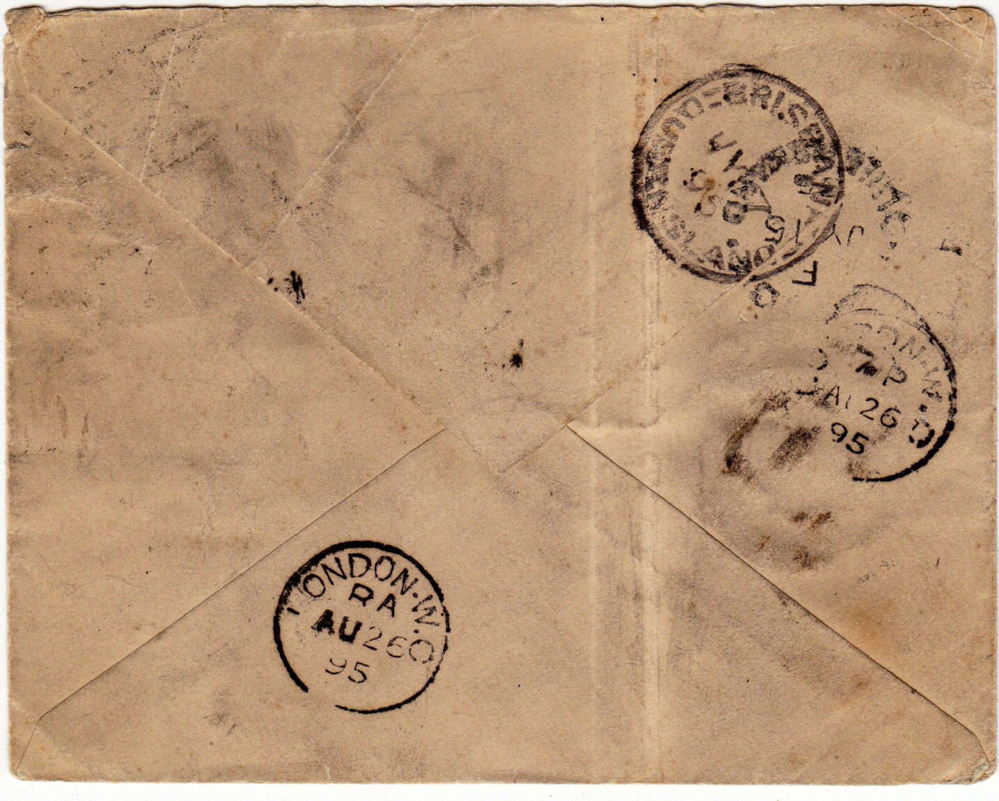 Brisbane datestamp type 10. Code A. Rated 4R. Dated 8 February 1894